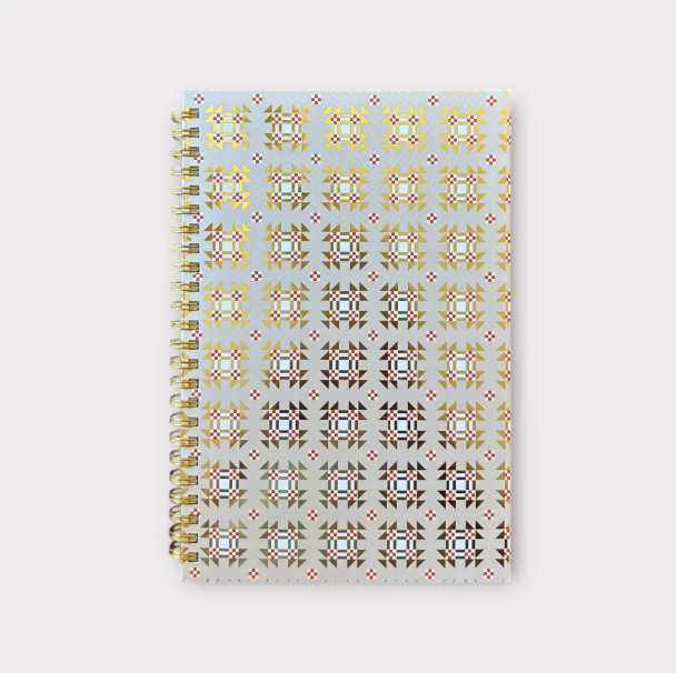 Hardcover, spiral bound notebook. A5 in size, it measures 5.5 in x 8.26 in with 80 lined pages. Each page is complete with undated date headers. This is your chance to start drafting notes for your next big idea or project! Also available in a Stars & Cubes pattern and as a sketchbook in a Young Man’s Fancy pattern.