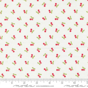 Tiny red cherries tossed on a white background. From the Cali Co Collection by Corey Yoder for Moda Fabrics. 100% Cotton, 44/45" wide.