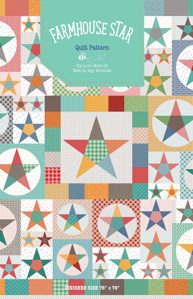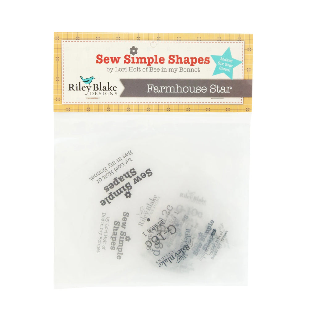 The Farmhouse Star Quilt by Lori Holt of Bee in my Bonnet features appliqued stars using Lori's Farmhouse Star Sew Simple Shapes. Finished size is 78" x 78". Paired with 12 Farmhouse Star templates for an endless variety of designs using your applique method of choice. Made of sturdy plastic, they have center marks and are see-through for fussy cutting.