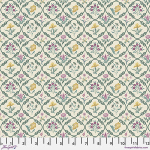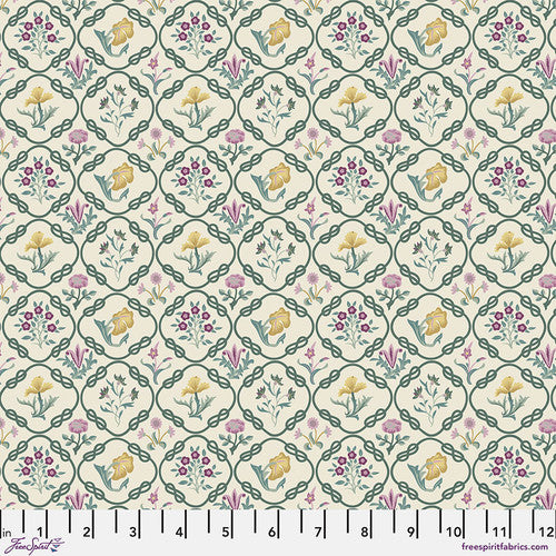 Morris' classic Mays Coverlet design in a slightly smaller size, the delicate lattice of vines surrounding single flowers in golds and maroons. The Red House Collection highlights the extraordinary talents of the women of Morris & Co., including William Morris's daughter May Morris, Kate Faulkner, and Kathleen Kersey. 100% Cotton, 44/45" wide.