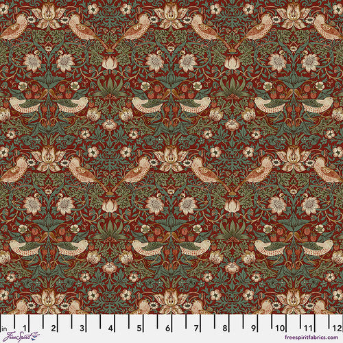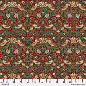 From the Cotswold Holiday Collection, this beautiful Morris & Co fabric is covered in traditional style leaves and flowers with birds and berries. Birds are beige and blush surrounded by green leaves, blush and ivory flowers. All on top of a wine background. 100% Cotton, 44/45" wide.
